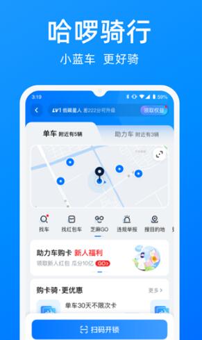 3. 升级后,App内哈啰单车、哈啰助力车、哈啰共享汽车一个平台全搞定;
