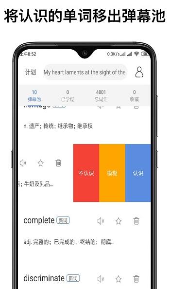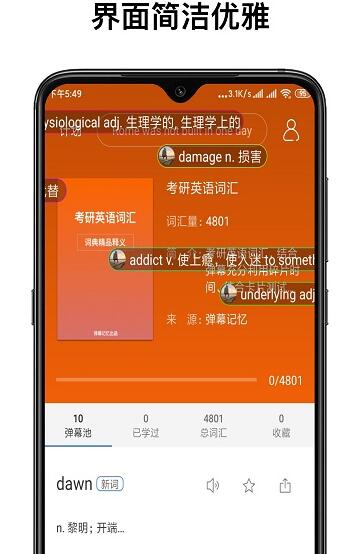 2、学习情况:弹幕记忆app你每天复习了多少单词,学习的情况如何及未来的复习压力;