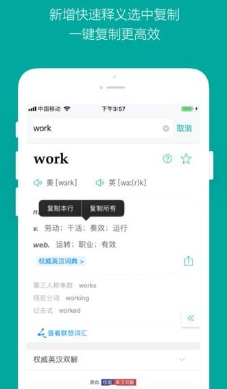 必应词典是一款功能十分强大的在线词典软件,它可以集成了完整的牛津词典和语音发音功能,可以帮助用户很好的处理各种外语翻译问题。该软件有40万的词语,涵盖了现代汉语95%以上的词汇,想查的话这里都能找到。它还有躲过语言还附带详尽的释义介绍,可以用来学习对应的外语知识,能快速获取单词的准确释义、丰富词组、短语和用法例句等信息,是一款非常不错好用的软件。