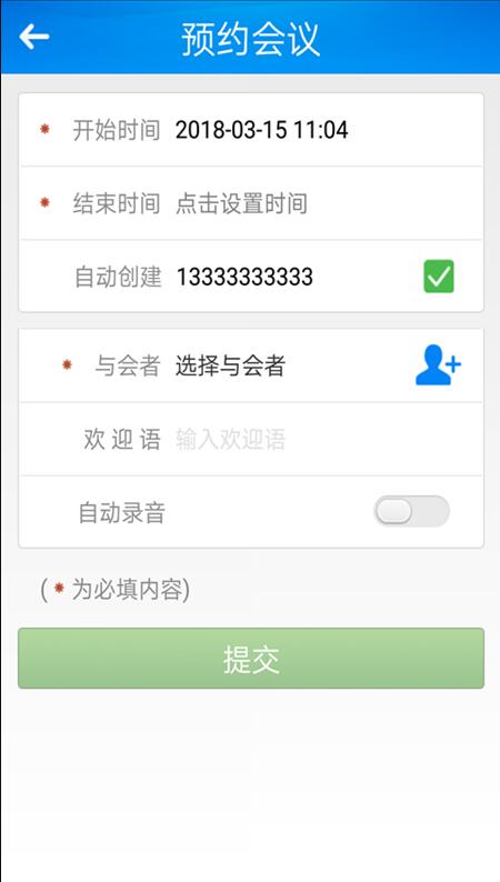 3. 支持自动加入会议,创建会议,只需提前输入会议信息;