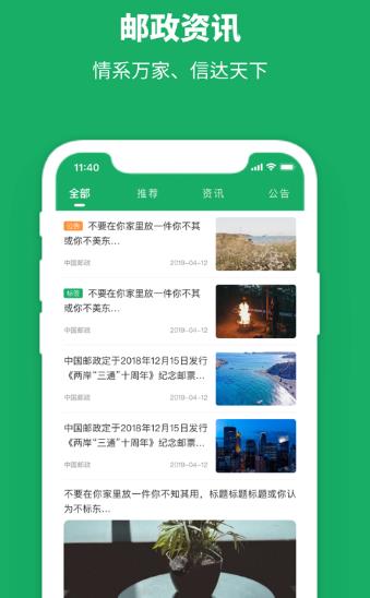 中国邮政是一款中国邮政服务软件,它能每天为你推荐新闻资讯,提供了许多服务功能,比如查询附近网点、派送快递、查看快递物流信息、订阅报刊、缴费、查询邮编等功能。另外还有很多东西都可以在这里在线购买,非常的方便。还能选择想要购买或是交换的商品,有需要的就来下载体验吧。