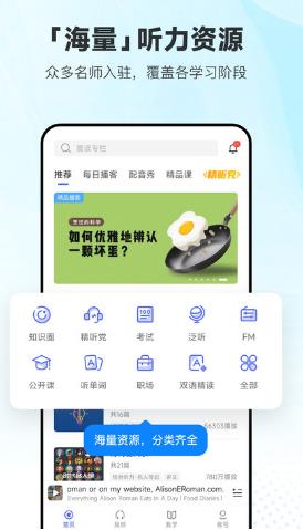- 兴趣学习:有声读物、名人演讲、公开课、少儿英语、影视英语等丰富资源;