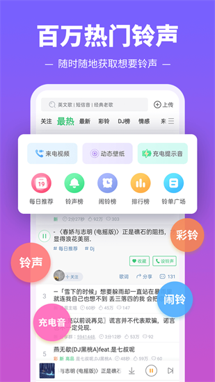 2、会及时更新最新的铃声和音乐资源,让用户始终保持新鲜感
