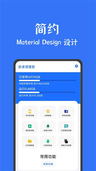 安卓清理君是一款可以帮助用户清理手机垃圾的软件,它有着很多种充满创意的主题可以选择,能定时为手机清理没用的垃圾文件,释放大量的内存。通过清理垃圾,能让手机释放出更多可使用的内存空间,而且还有很简单的垃圾清理操作,一键就能释放所有的空间,能让手机运行的更加快速和稳定。