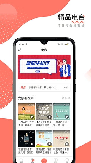 4、暖心电台播放,知识也能用听的,听电台学教师资格考试;