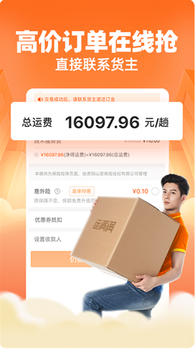 高效配货防空返:很多人回程的时候接不到单这样车辆以及油就会有耗损,平台保障司机的放空风险,降低司机的耗损量。