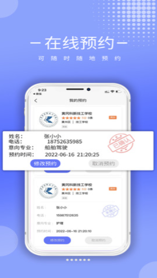 1.学校信息查询:软件中有全国上百所学校入驻,你可以直接通过软件查找一些学校的招生计划,看看这个学校的历史以及就业前景。