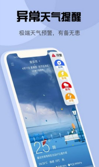 3、有各种恶劣天气的预警信号,遇到台风、大雾等天气会及时提醒你,是一款方便生活的服务软件。