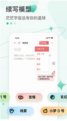 小说已经成为现在很多年轻人打发时间的工具,无聊的时候看看小说,甚至还有人开始学习写小说了,要知道写作可不是简单的事情,需要灵感也需要文笔,今天我们给大家介绍的是彩云小梦写作神器,可以帮助作者构造写作题材,还能让你的写作内容更流畅,很多小说创作者都在使用的一款软件,小伙伴们快来试试吧!