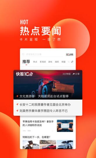 界面简洁,排版精美,化繁为简。智能搜索,热点推荐,娱乐新闻,分类一目了然。