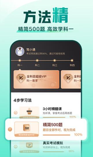 1、科目一:科目一,又称科目一理论考试。考试内容包括驾车理论基础和道路安全法律法规及相关知识,再加地方性的交通法规。驾校一点通提供了顺序练习、专项练习、随机练习等众多练题模式,供用户自主选择。