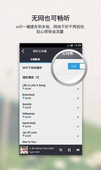 3、轻松拖拽歌词,歌词同步,让您边听边唱,流量限额提醒,贴心关怀您的话费。