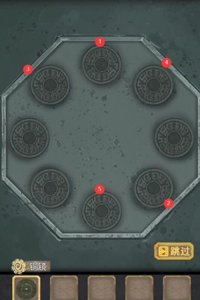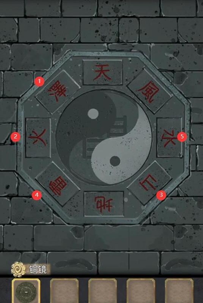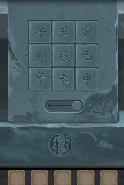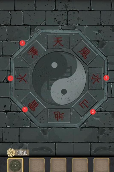 15、最后门上的机关根据石牌上的字旋转门上的按钮,旋转如图所示,完成第五章。