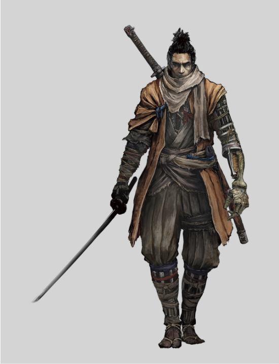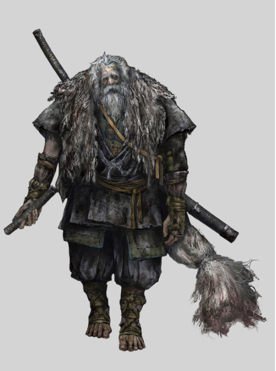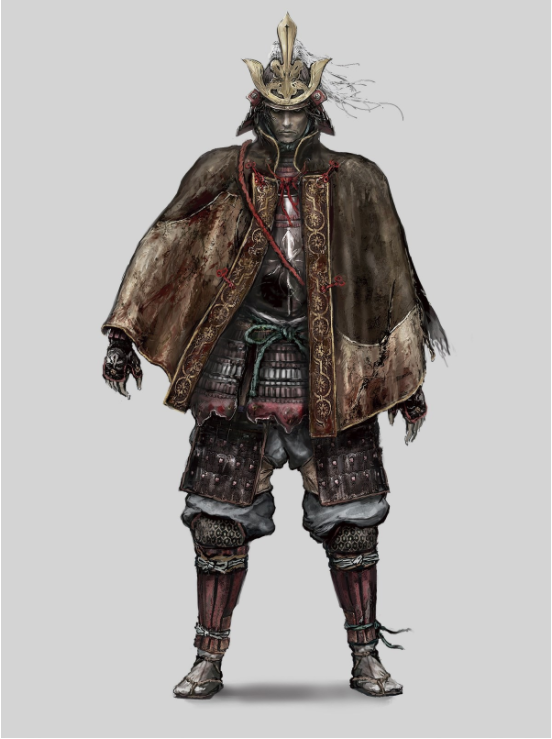 在故事的开头败给了苇名的武将,因而失去了所侍奉的皇子和左臂,并获得了忍义手。