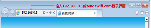 在电脑上打开浏览器,在地址栏输入tendawifi.com或192.168.0.1,然后按回车键(键盘上的Enter键),如下图所示: