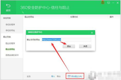 1、复制想要阻止的网址,单击“添加阻止URL”,将复制的网址粘贴至“禁止访问的网址”输入框,单击“添加”