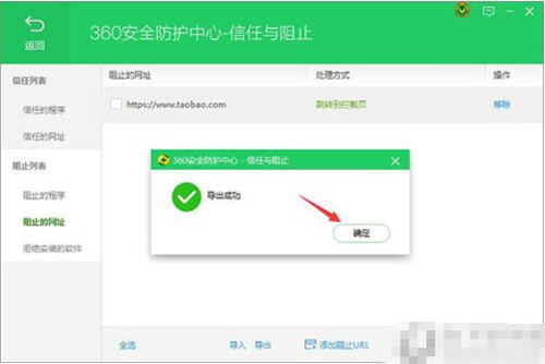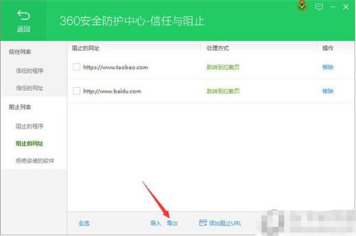 2、取一个有意义并便于识别的文件名,如:360安全防护中心阻止网址,单击“保存”,即可成功导出黑名单;