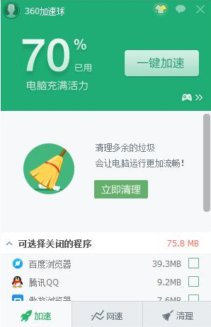 方法一:360浏览器开太多标签占用了内存问题,并且随着浏览器开着的时间越长,占用内存量就越大。我们可以使用360安全卫士的加速器让不必要的进程释放。
