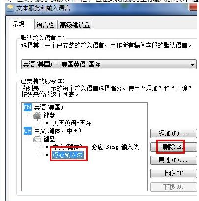 方法六:有些小的输入法会导致浏览器奔溃(例如:点心,速浪,万能,小晨,速拼等)大家可以更换其他输入法或者在在文字服务与输入语言框, 已经安装的服务里有输入法列表。选择需要删除的输入法,点击右边的(删除)