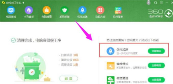 6,检测和清理完成后,可以找到电脑中的加速功能,帮助我们提高电脑速度。