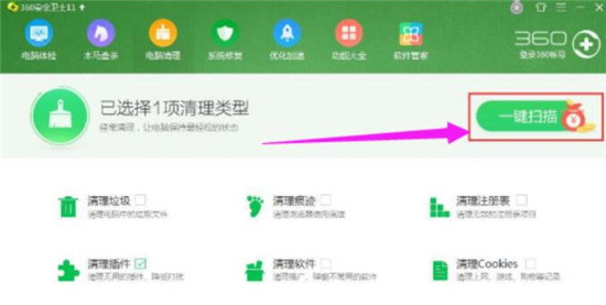 4,对于电脑资源整理,我们可以点击进入到电脑中360安全卫士,在主页面中找到电脑清理功能。