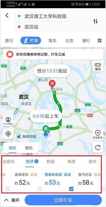 5、我们在打车的时候,选择优惠券指定范围的车,就可以使用,如下图所示:
