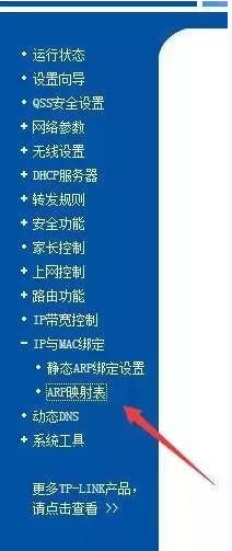 首先我们可以先看看自己的路由器上面有那些IP地址,点击左侧导航里面的IP和MAC绑定-ARP映射表!!www.dnzsb.com