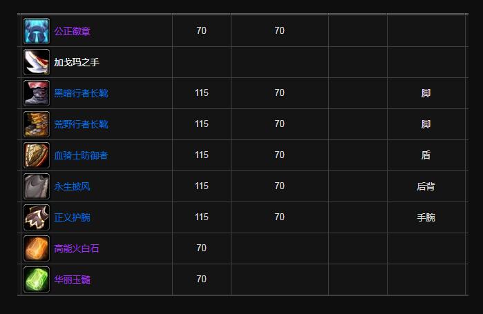 2.鲁克卡巢穴废铁臂甲:装等705、力量+276、暴击+76、急速+115、精通+76、多重打击+76、绑定装备。