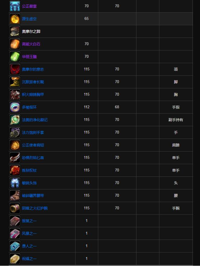 地狱火城墙难度为普通时,战士可掉落以下装备: