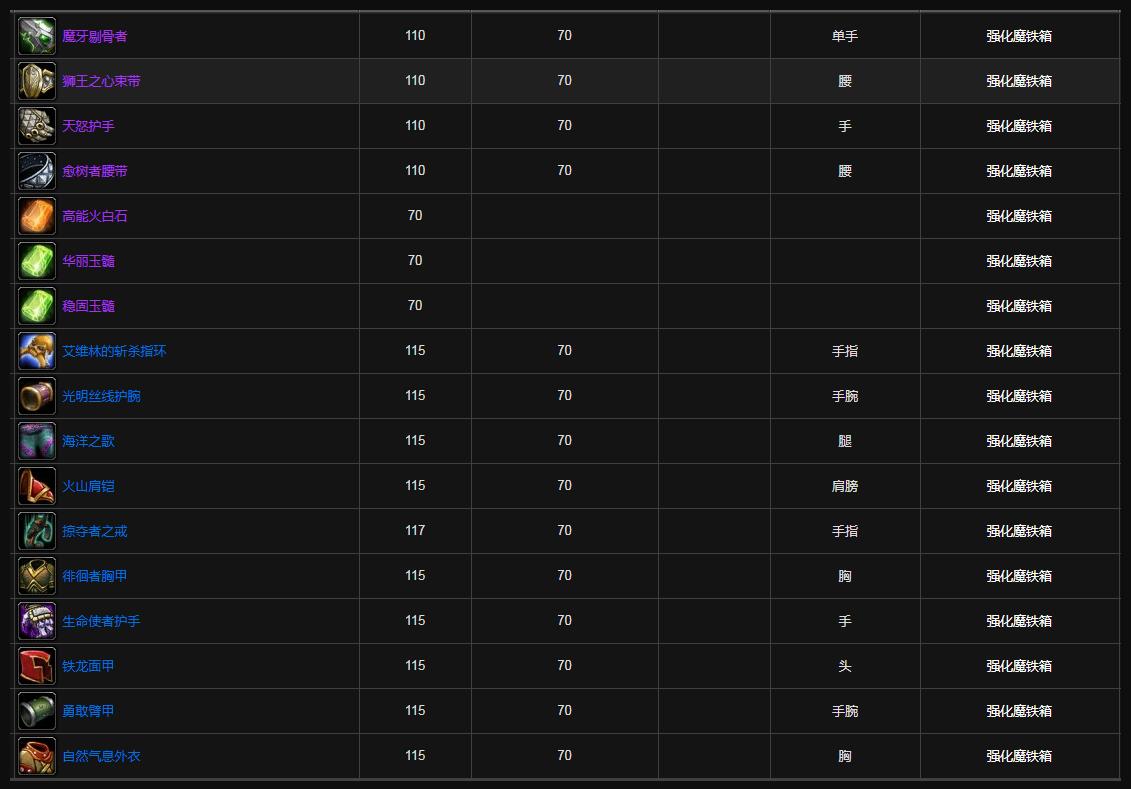1.魔能机甲手套:装等690、力量+149、暴击+43、急速+91、绑定装备。
