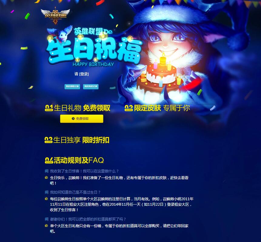 4.需要注意的是,每个召唤师的生日是按照单个区域召唤师的注册日期计算的。