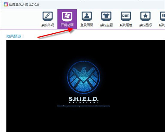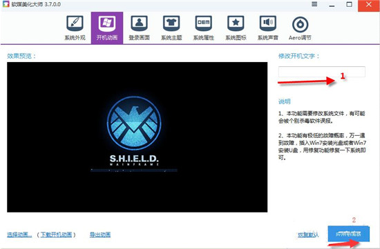 7、选中后即可看到效果预览,右上角可以修改开机文字,不需要也可以。点击右下角的应用到系统,重启电脑就OK啦