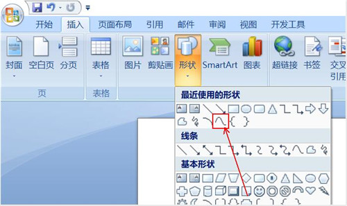 1、首先打开word软件,点击“插入”选项,打开里面的“形状“选项。