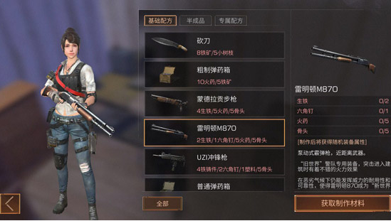 1、雷明顿M870:近距离伤害高,不仅刷僵尸效率,而且耐久度消耗慢,维修成本低,如果暂时不去PVP混,这把武器可以应付野外的大部分小怪。