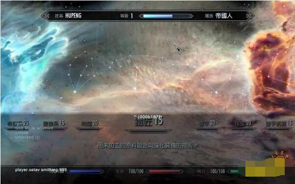 3、然后再按下【~】键退出控制台,退出技能界面后再进入就会发现铁匠能力变成999了,其他代码的使用方式类同。