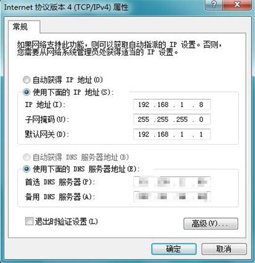 4、设置固定IP:我们一般连接宽带的时候都是自动选择IP,自己使用宽带当然没有问题,但是如果是公用宽带很可能出现连接不上网的情况,那可能是因为你使用的IP并没有被路由器所允许,一般公用的宽带IP都是固定的,设置为路由器分配的IP地址即可。