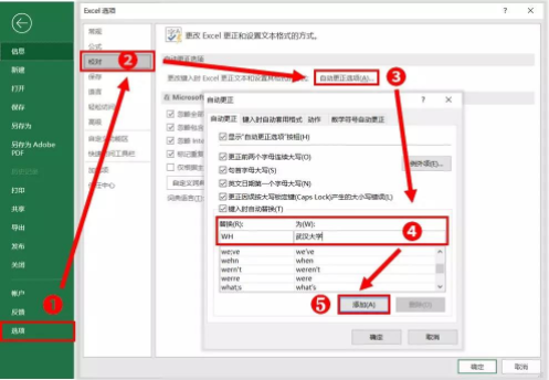 点击【文件】-【选项】-【校对】-【自动更正选项】,把缩写和完整名称对应填写进去即可。来看下效果。
