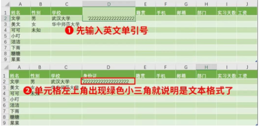 方法就是将单元格格式由「数字」改成「文本」——可以是每次录入身份证号码时,先输入英文单引号↓