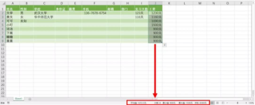 如果我们直接在录入时给数据加上了单位,就会发现右下角那里不再有数字的求和,而是变成了单元格的计数。