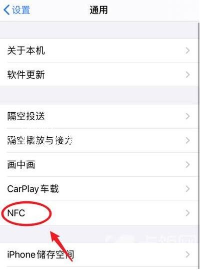 3、然后在通用中找到【NFC】功能,点击进入设置NFC功能;