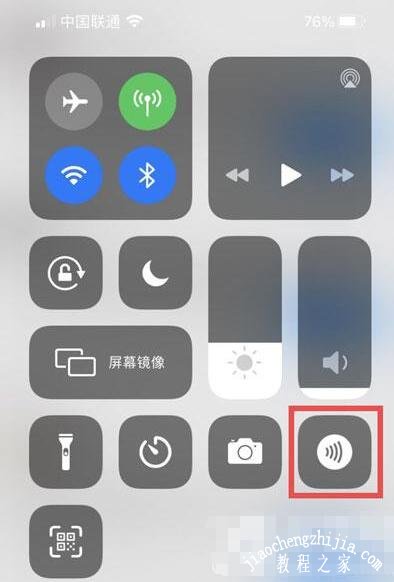 8、添加到控制中心之后,在桌面按住右上角下滑打开控制中心,然后就可以看到NFC了;