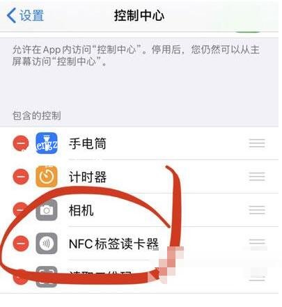 7、最后在自定控制中,找到【NFC标签读卡器】功能,点击【+】按钮添加;