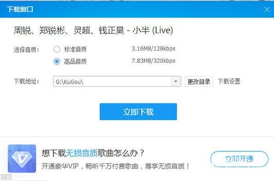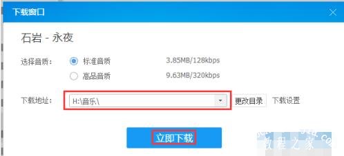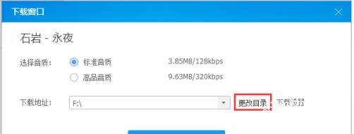 4、之后将会进入到下载窗口界面,选择合适的音质之后,可以将下载地址直接改为U盘所在的目录,如下图所示:
