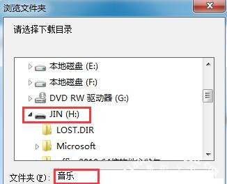 6. 我们将下载位置更改为【可移动磁盘】下的【音乐】。
