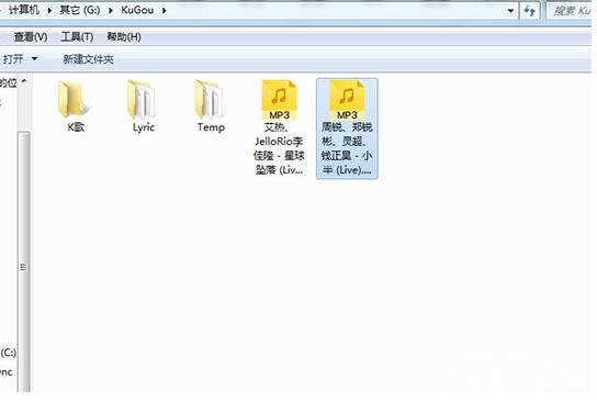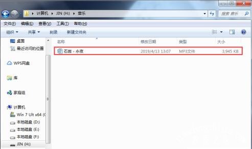 7、进入到歌曲下载的目录,直接将此歌曲拖动到U盘之中就OK啦!如下图所示:
