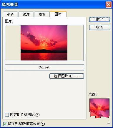 5、切换到“图片”标签下,通过其中的“选择图片”按钮,选中前面准备好的图片,确定返回。