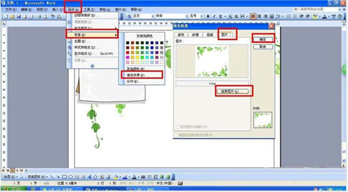 2、设置小报雅背景图片后点击确定。背景一般有一些花边,但最好大部分底色是白色或浅白色。
