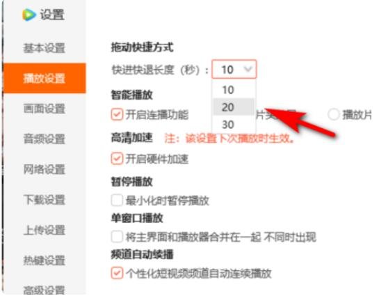 5、最后需要在播放设置界面,选择“快进快退长度”即可,如图所示。