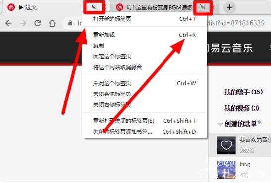 3、如果标签页中有多个相同域名的网页,那么所有相同域名的网页声音将会被同时关闭。