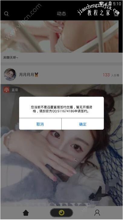 2、您当前不是迅雷直播签约主播,暂无开播资格,请加官方QQ:511674186申请签约,申请成功之后就能够一键开播了哟!
